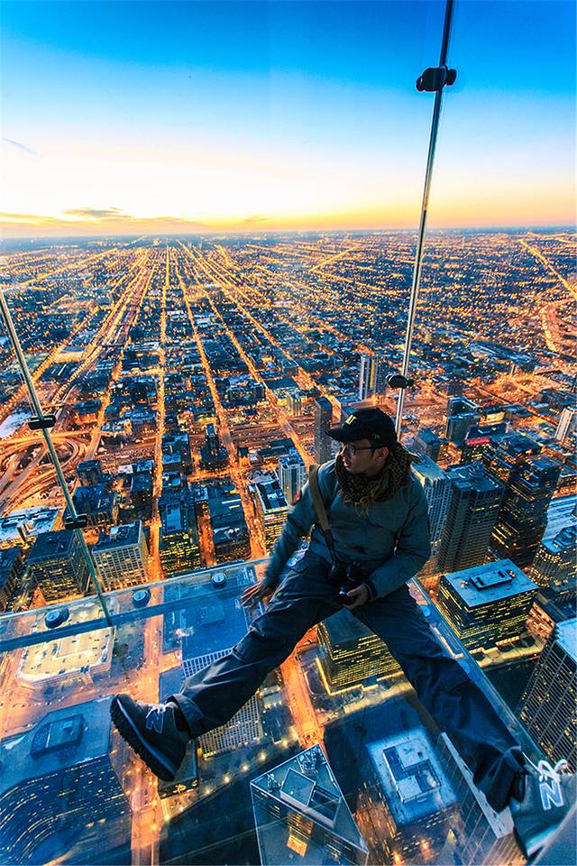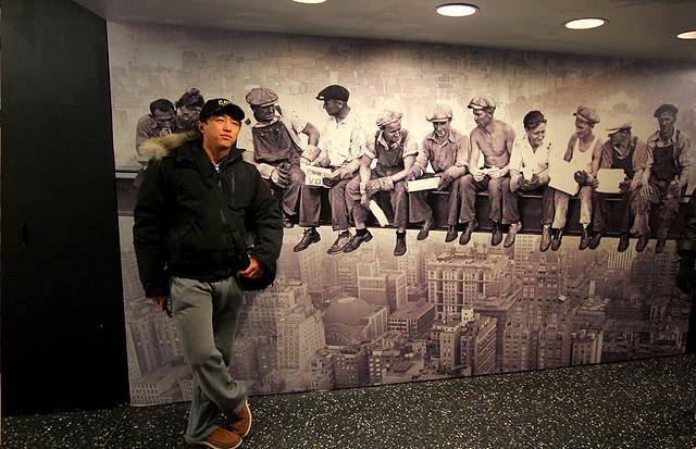 上去之后,好基友先来一张。看着20年代那些建筑工人在没有保护的情况下在钢条上走来走去,原来美帝也有不管人死活的时候嘛。(加油啊,祖国)