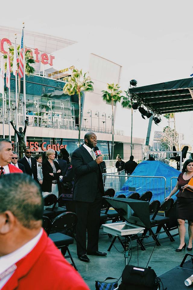 继续开到一个什么什么音乐厅,下来放水继续走。在大家的强烈要求下,车子开到了斯台普斯球场~
