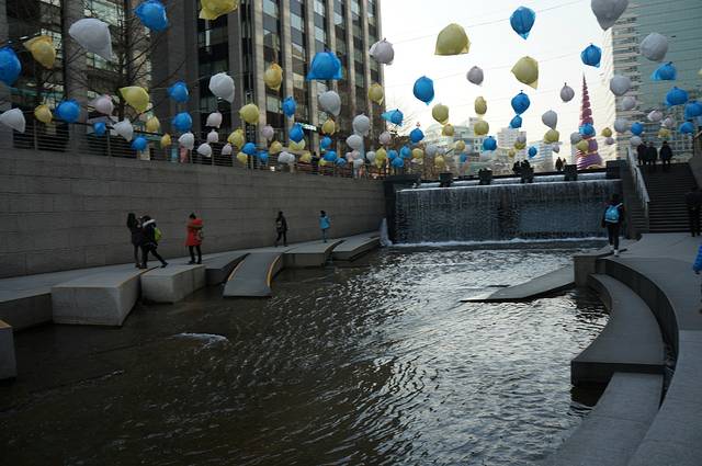 清溪川 经过市厅后,沿主干道到清溪广场,即到广通桥,沿水一直往下走(东大门方向)