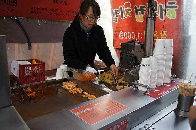在高度观光化的明洞、东大门,普通话交流是没有问题的。但是想套近乎、砍一下价,可以学一下“这个我很喜欢” “但是” “这个有点贵”等韩语表达。加上为难的表情,无论是大妈还是年轻姐姐都会给外国人优惠的,我就是用韩语撒一下娇(形势所迫,说中文完全不撒娇的我居然用韩语撒娇了。。。),把89000W的长款外套砍到了60000W。