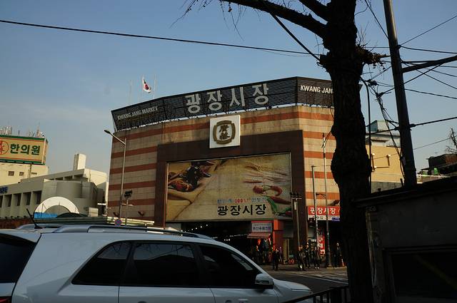 (广藏市场所在那条路平行于清溪川,所以若要从川旁走到广藏市场,在到达东大门前,选一条转左的主干道,继续往东大门方向走,就可以看到广藏市场)