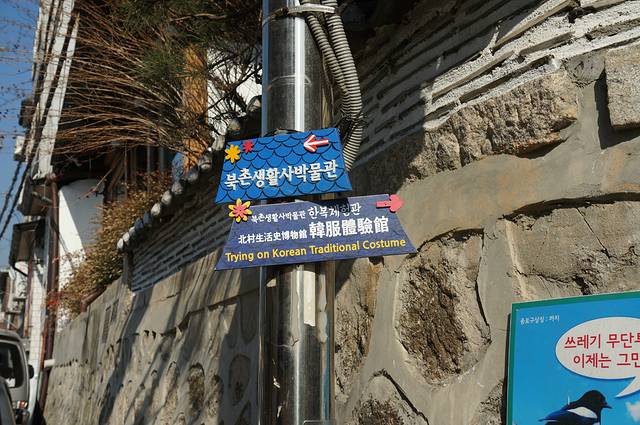 北村(韩屋村)地铁三号线(橙色线)安国站2号出口,沿宪法裁判所直走,过了i观光咨询处后,北村路左侧为嘉会洞31番地,右侧为嘉会洞11番地,都是韩屋观光地
