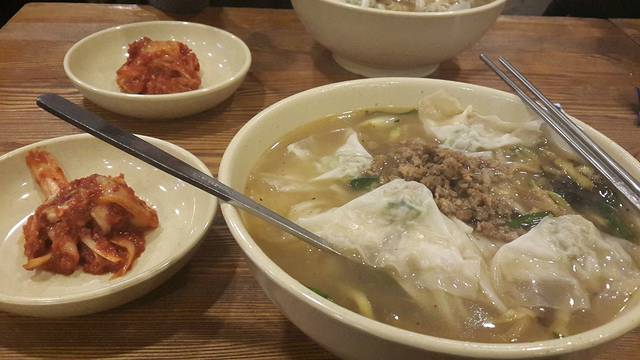 明洞饺子招牌 泡菜会不断加,不过这家的泡菜很辣。。。。贴心地给你准备口香糖~