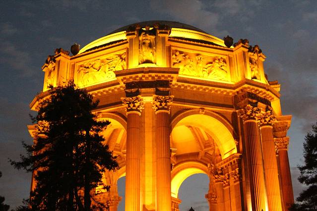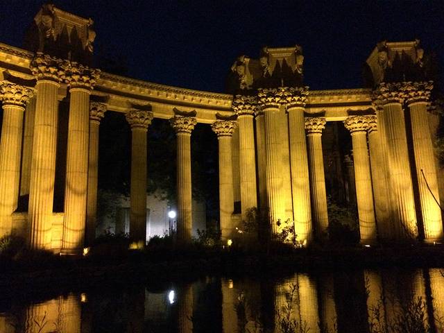 Palace Of Fine Arts——剪影。从金门大桥过来很近,已入夜,一片寂静。