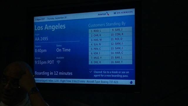 候补的流程也很清晰透明,根据旅客权限和排队时间,直接显示在登机口旁的航显屏。