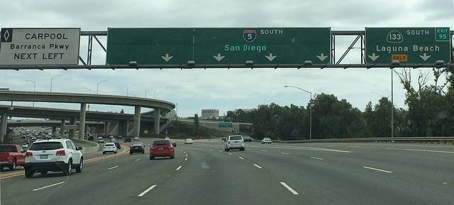 沿着5号公路,从洛杉矶到圣地亚哥。高速公路上有CARPOOL的多人快速专用道,车内有2人以上就可以免费通行。