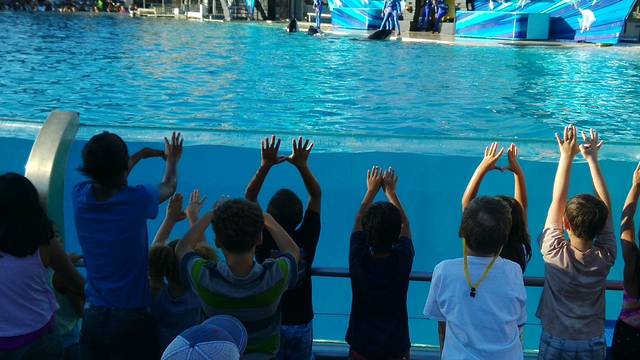 最受小朋友欢迎的一幕:大家争相作出双手交叉下翻的动作,SHAMU就会给你来一个亲密接触。。。。。