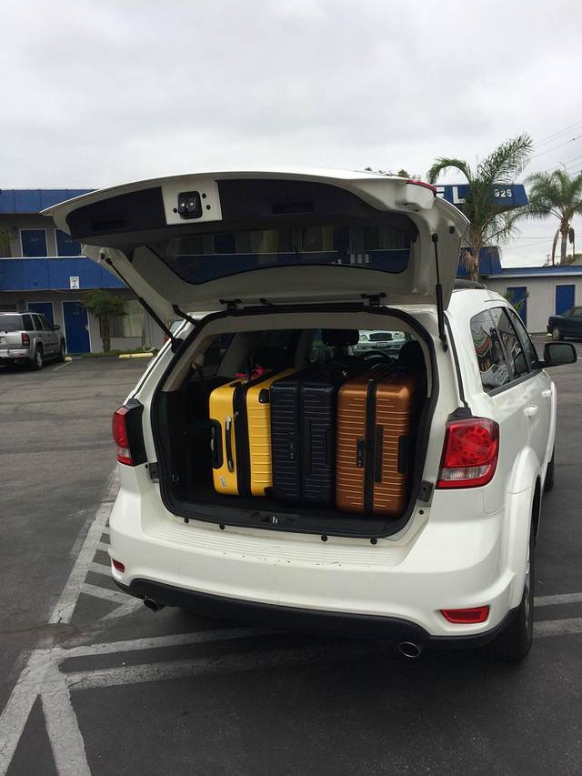 美国之行的好朋友:DodgeII Journey 大白7EON888。内部空间很大,老婆副驾驶,女儿后排睡觉,后备箱放置3个大行李箱没问题。动力足,操控性能也很好,而且自带usb、蓝牙,可惜没有导航(另外要付钱租的)。导航我们自备了IPAD路拓正版导航(试用期30天)。美国GPS信号没问题。