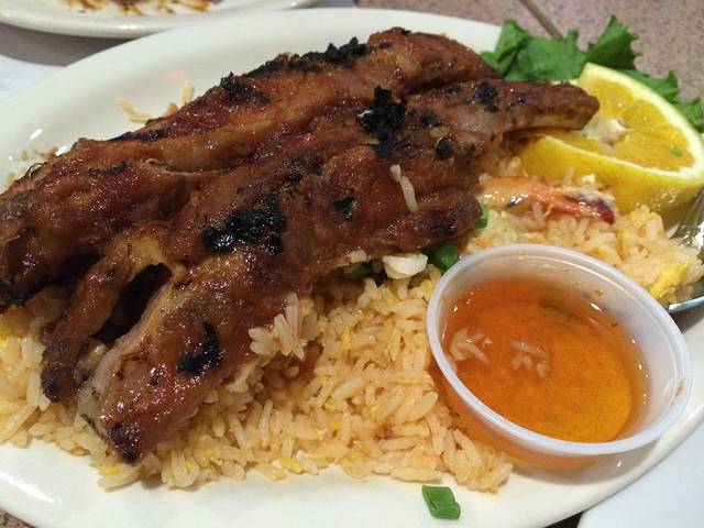 烤肉、炒面和米饭——典型的美国乡村早餐?