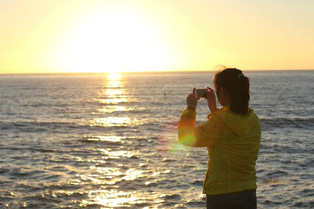 傍晚的海湾很漂亮。虽然没看到海狮。