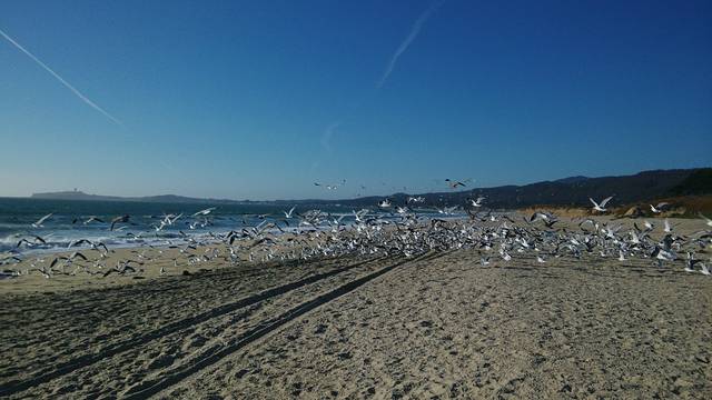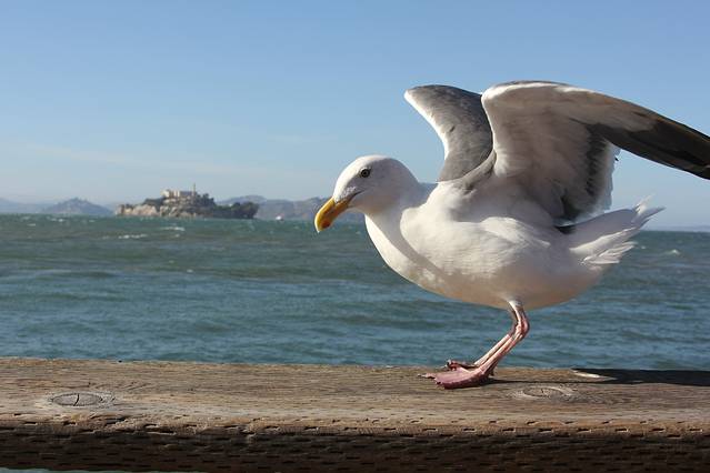 又见红嘴鸥,远处是传说中的恶魔岛,关押重刑犯的地方