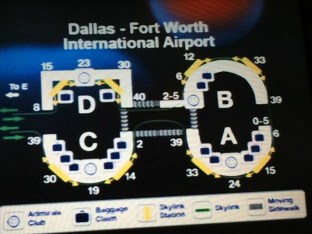 DFW机场5座航站楼之间有穿梭轻轨skylink相连,非常方便。轻轨有两节车厢,相互隔离,很方便地将国际和国内旅客进行区分。