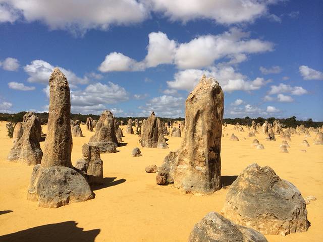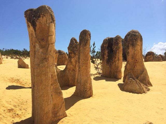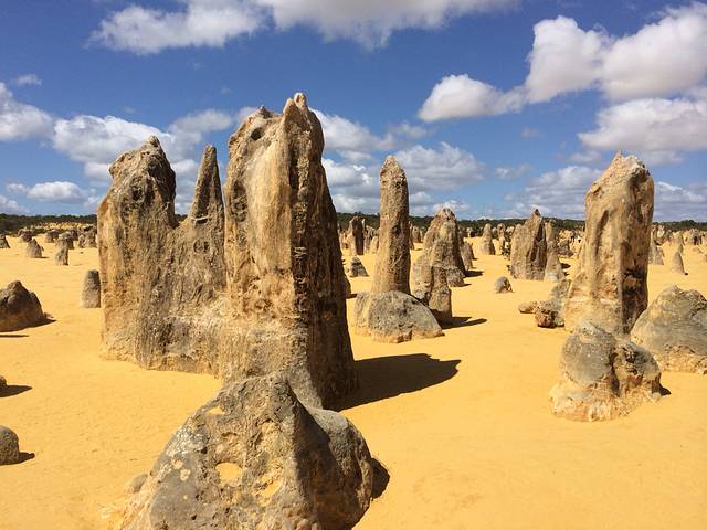 最后一站,pinnacle 自驾游,沿着6号公路进发,全球仅此一处,曾经的海底森林经过5000万年形成尖峰石阵,沙漠里的原始森林,鬼斧神工,那一刻只有用震撼来形容,一边是大洋一边是沙漠,雪白色的沙丘更是极为罕见,西澳地标性景点…