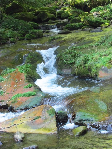 穿行在峰峦幽谷云间,溪水明净,跌宕多姿,小鱼游弋其中,溪畔花草鲜美,鸟鸣莺啼,人沿清溪行,胜似画中游。