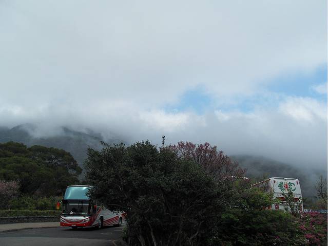 公车来了,我们要下山了。公车上有旅行团的游客,也有其他游客。车到终点时,所有人都从前门投币并下车,而我们只要跟着陈导下车就行了,下车后,槑纸就说司机如何判断哪些人是旅行团的,哪些人是非旅行团的,好剌瓜说:“自觉!”
