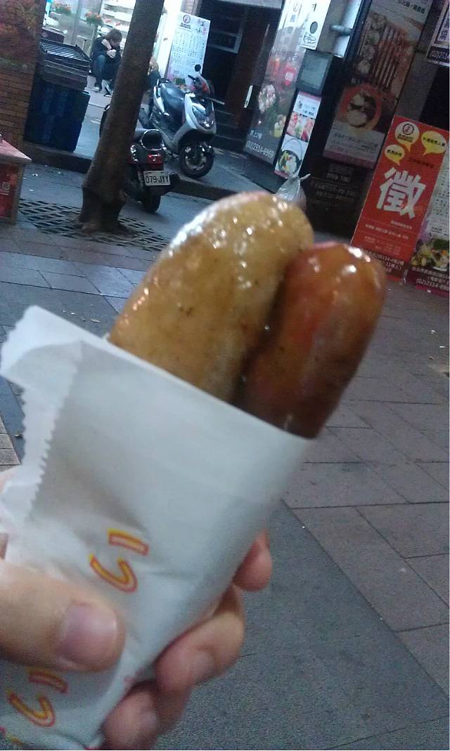 文化路夜市和第一晚我们去的饶河街观光夜市不同,如果说饶河街观光夜市是一条步行街,那文化路夜市就有点像允许机车经过的步行街……其实槑纸超想买东西吃的,可惜和好剌瓜一样被波霸奶茶撑的呀。但槑纸不甘心,最后竟然给槑纸瞄到“台南周式虾卷”,既然这次去不了台南,就先试试台南很出名的虾卷吧!