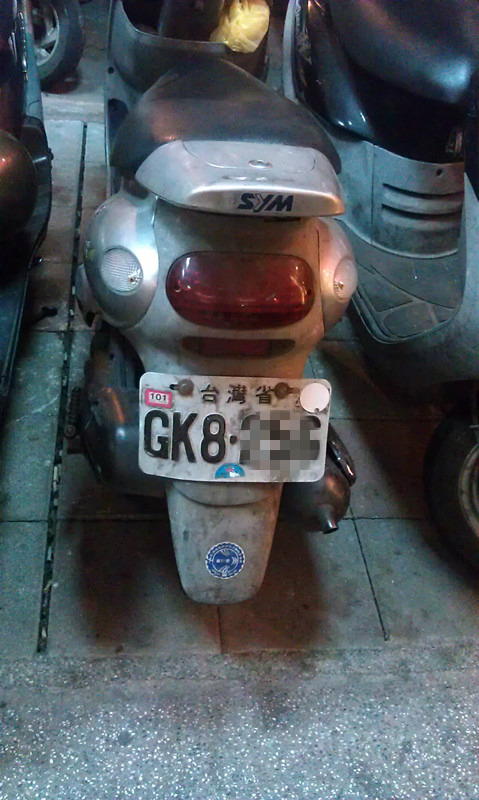 照的这些车牌都是机车的,台湾的路边经常可以看到“成群结队”的机车在“休息”。有一晚我们见到一机车主人把机车停在路边指定区域后,悠悠然地和女朋友走了。啊?台湾的治安那么好!台湾的公共福利这么好?不用给保管费的吗?不怕被人偷车的吗?这问题忘记问了……