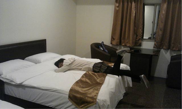 到饭店也已经十点多了,阿泰说过离台北越远,饭店的房间就越大,所以,这一晚,槑纸睡的是双人床,哇塞,槑纸终于可以好好的睡一觉咯!