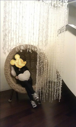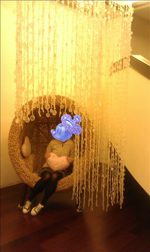 饭店的大堂放了很多用来拍艺术照或者拍戏的摆设,槑纸和好剌瓜也臭美了一番,当槑纸照这张照片时,听到一中年姨姨和她的丈夫说:“你看,我和她的姿势一模一样的!”呵呵呵呵呵,我闷都有少女情怀嘛 ……