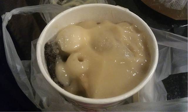 到达饭店的时间居然还没到八点,哇塞,超爽的!放下行李,槑纸和好剌瓜又要“扫街”去了!在大巴就听阿泰介绍了一间叫50嵐的奶茶店,所以在热情好客的台湾人的指引下,在文化路上买了一杯正常甜的和一杯70%甜的波霸奶茶。槑纸好久都没喝过珍珠奶茶了,所以无法比较珍珠奶茶中的奶茶,但那些珍珠槑纸确实吃出来了不同,台湾的珍珠很Q很Q。