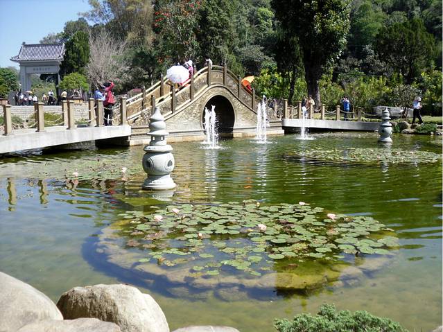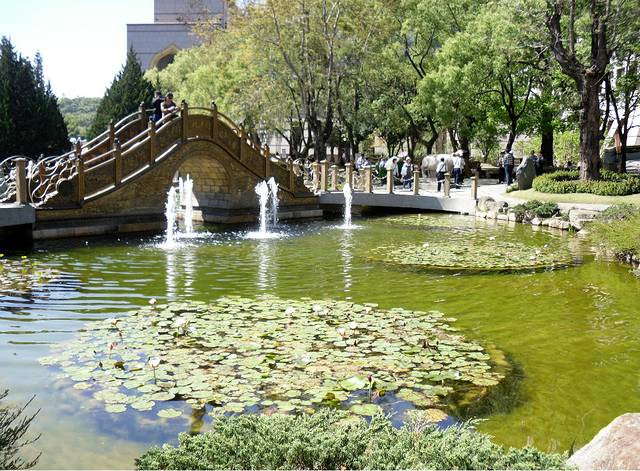 槑纸和好剌瓜跟着陈导兜了一圈后,就自由活动去了。这座铜桥叫“同源桥”,是杭州灵隐寺赠送给中台禅寺的,从这个方向看,桥的左边代表中台禅寺,右边的三泉映月代表杭州西湖的灵隐寺。陈导说走一走铜桥,今年就会事事顺利,平步青云。好吧,槑纸和好剌瓜也要走一走,希望今年可以行大运!!!