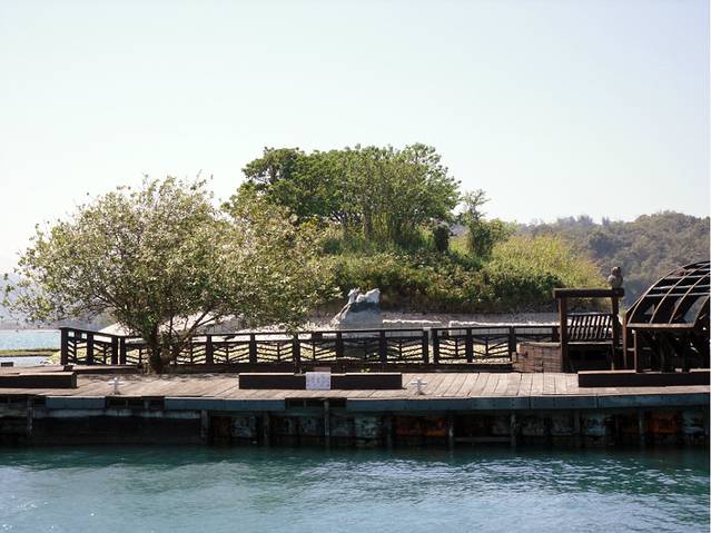 随后,我们登上了一艘游船。开船的小伙子叫赖皮,邵族人。赖皮一边开船一边很是兴奋地为我们大陆同胞介绍日月潭……“这边是日潭,那边是月潭,分不清的请举手!”是槑纸太笨了吗,槑纸这么认真听讲,居然还是分不清日潭和月潭!!!于是,槑纸乖乖地举起手来……“分不清的人就对了,因为只有坐直升飞机才看得出日潭和月潭。”台湾同胞真会开玩笑