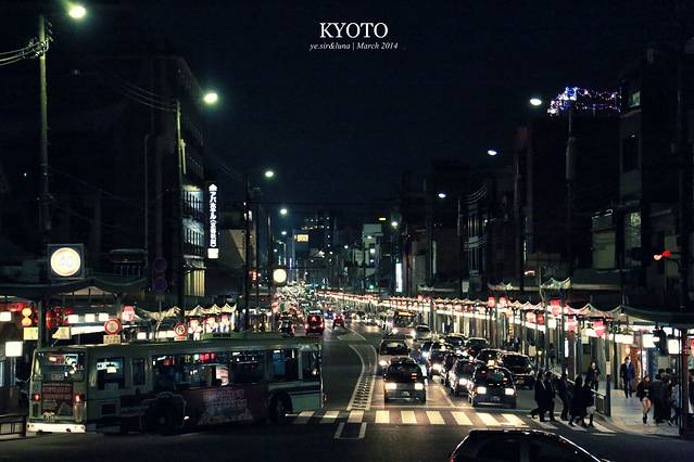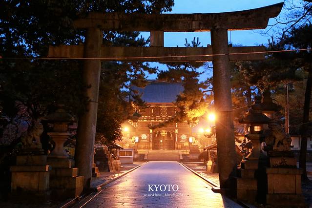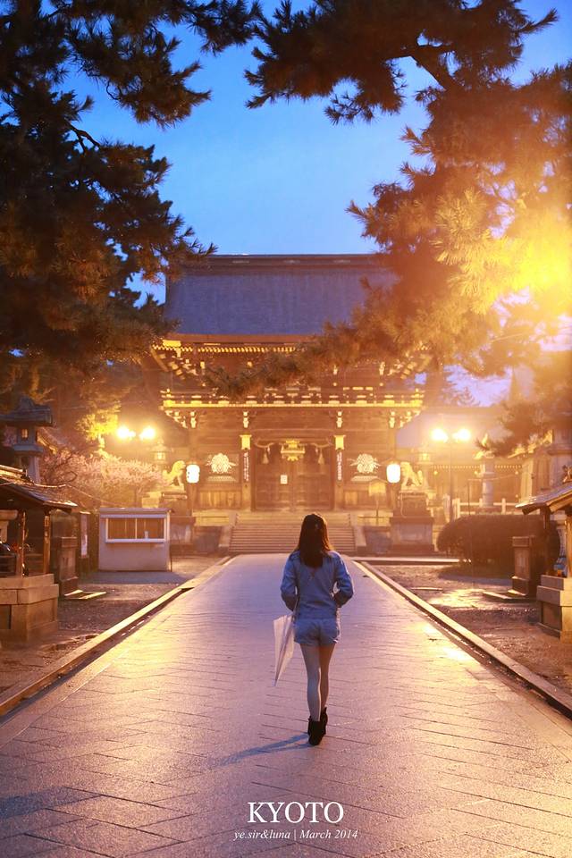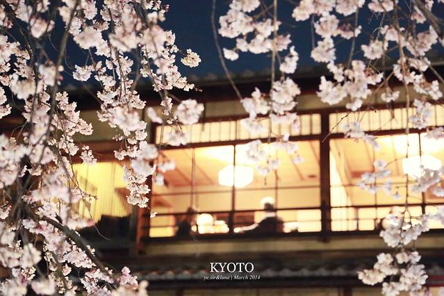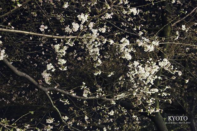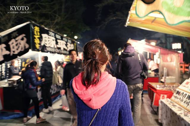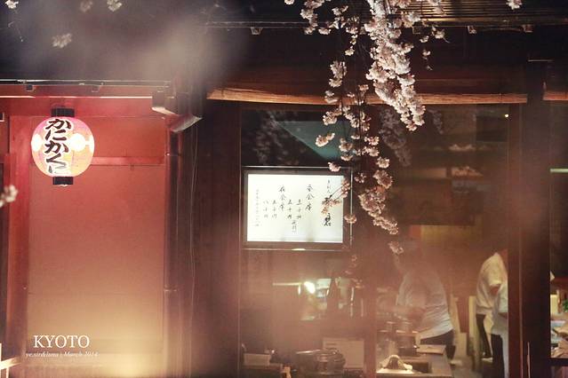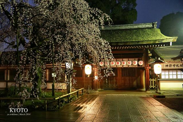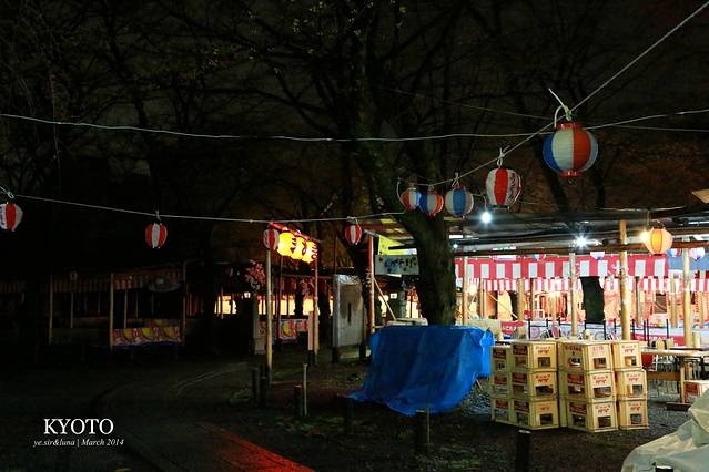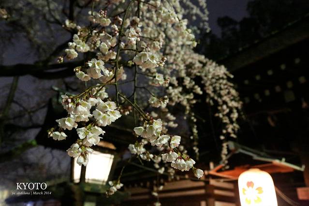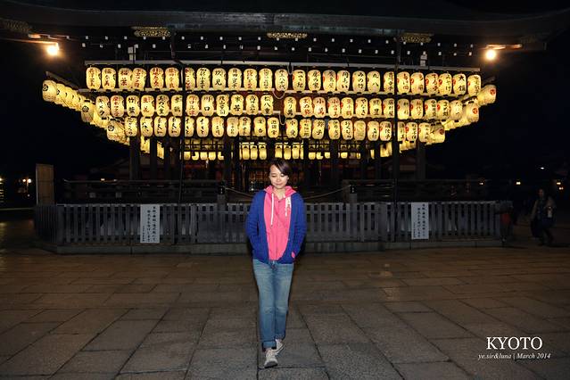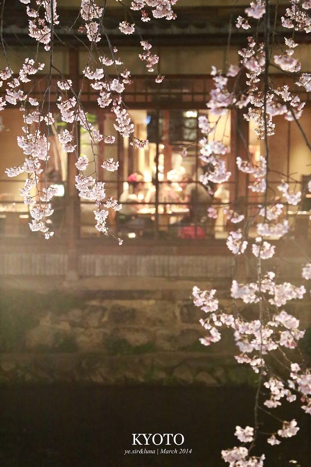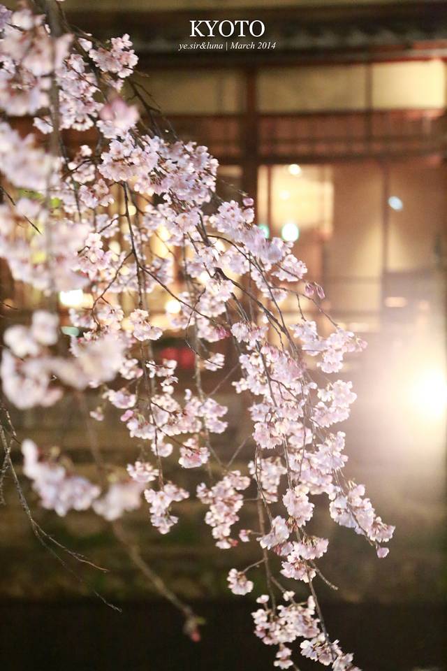 接着走回到八坂神社(我们俩的脚力真心了得),大家还记着这棵巨型樱花树么,今晚来已经泛粉了……我们真是见证了京都樱花开放之前的各种矜持啊,下次有机会再来求豪放好么