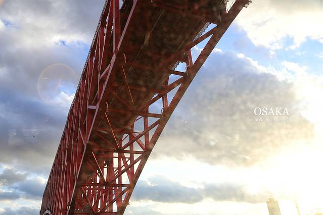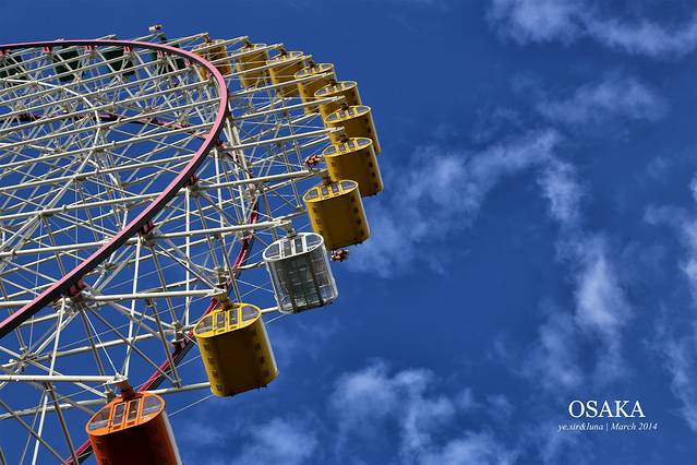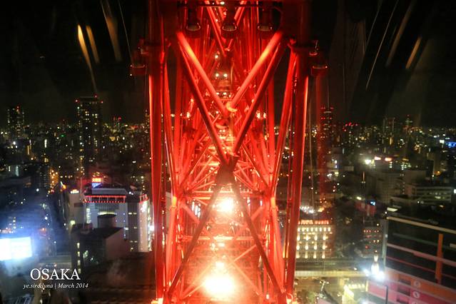 大阪港区逛完,坐地铁去梅田,天保山摩天轮没坐上,猩红色的HEP FIVE摩天轮可以小小弥补一下(周游券免费)。摩天轮挺小的,但搭建在商场楼顶,可以看到大阪四通八达的电铁从脚底下呼啸而过,效果还是蛮惊艳的哦!(yesir这场景这画面梦中似曾相识,我心说又不是刚开始要把妹,好烂的搭讪!)