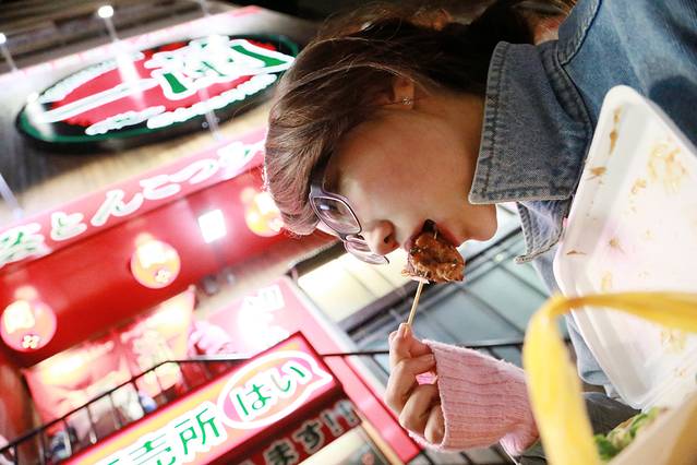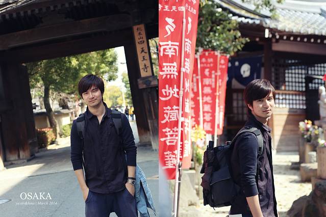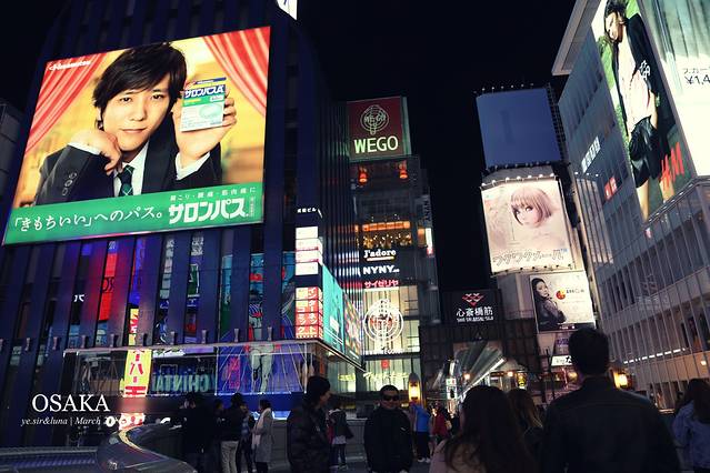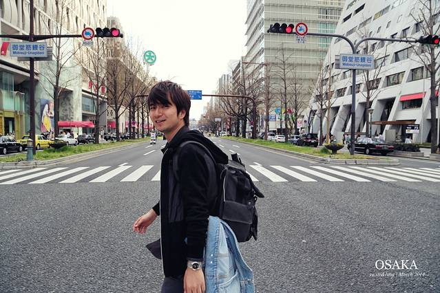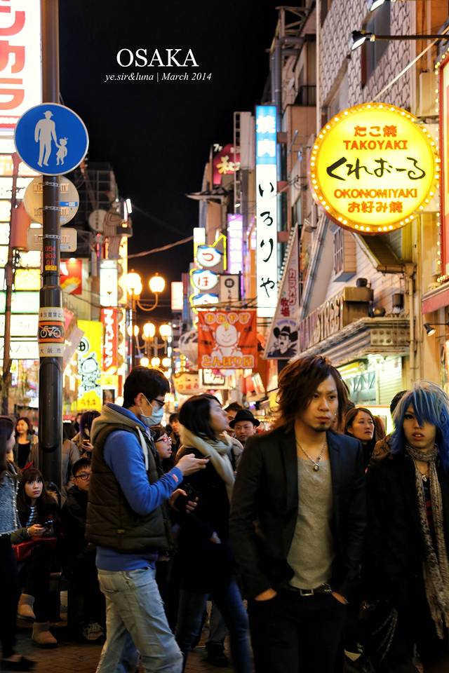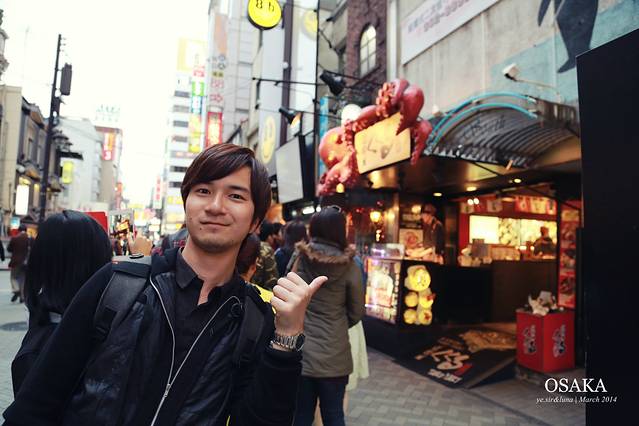 住宿在心斋桥附近的大阪帝国酒店,条件一般,胜在地段。它对门就是人气颇高的APA,看上去性价比更高一点,假如能早点订到APA想必会好点。来早了,check in 的时间还没有到,只能先把行李箱和我的背包寄存一下,yesir背着笨重的摄影包和三个镜头,一声不吭地带我先出去转悠了,后来这也成为了压弯yesir的最后一根稻草!
