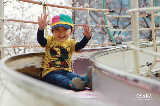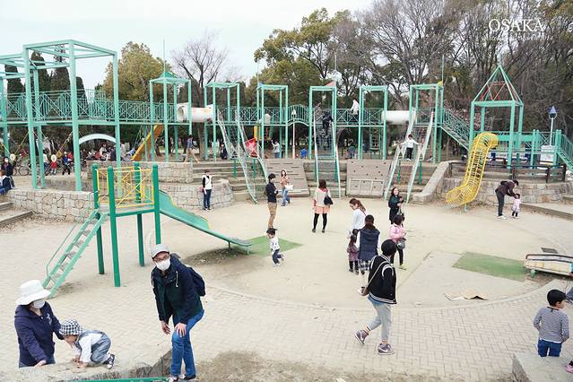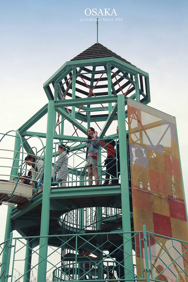 酒店出来,先去大阪城,把周游劵中剩下的必去景点带到。大阪城那站的地铁口上来有一个儿童角 世界各国的少年儿童都爱滑滑梯