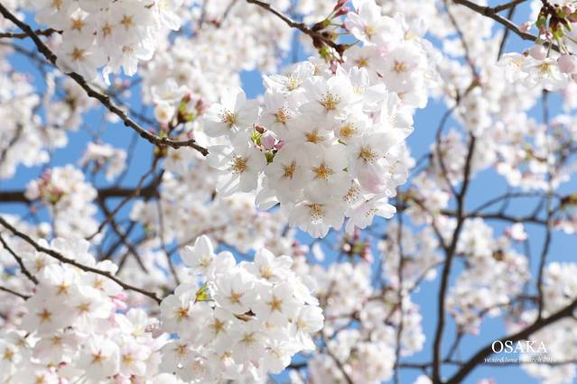 提前两个月,对于樱花花期的把握是最纠结的。当时订酒店时樱花预报说21号开花,27号满开,一想今年冬天都不冷,樱花肯定早早开了,就兴冲冲预定了这个时间段春秋刚刚开通的上海飞往大阪的机票……