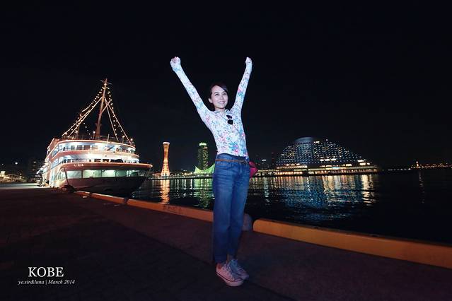 背景就是神户塔,没错长得像手电筒的家伙。当然等恋战的我们慢慢吞吞逛过去的时候它就没电啦