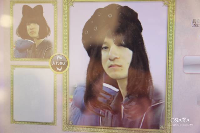 哈哈哈有个很搞笑的插曲,之后的一个月我都指着这个放声大笑了!是这样的,某药妆店里有一款拍照试换新发型和新发色的软件。有一个妈妈抱着孩子想去玩儿,但是孩子还没有抱起来,好奇的yesir往那台机器的摄像头望了一眼,结果摄像头就抓取了yesir迷茫又无知的表情……(只是因为在人群中多看了你一眼,再也没法忘掉你容颜~~~)