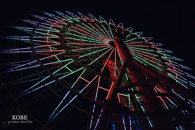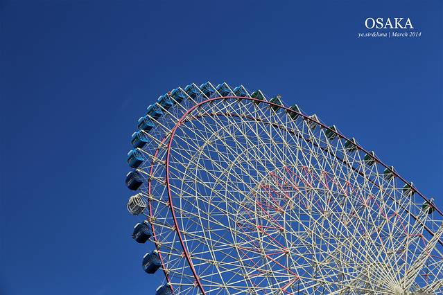 这一天的正式游玩从傍晚开始。先赶去天保山摩天轮(周游券免费),据说这是世界最大的摩天轮?可惜这段时间不接客,维护到4月20日才开放,只能遗憾地看看了,有机会坐的不要错过哦。