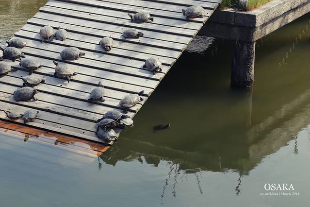 回酒店去check in,调整之后开始和yesir合计:我们还有购物任务没有完成,晚上还要再去大阪城看夜樱,时间有点紧迫,快快计划起来才好。yesir面带倦容地提议,要不大阪城夜樱就放弃吧,再说也未必有白川的好看。我挺不情愿放弃,总觉得都最后一天了,不抓住假期的尾巴往眼睛里多塞点东西说不过去。见我不乐意,yesir只好坦白自己的脚趾上的水泡实在疼痛难忍,经不住负重跋涉了。我掰起他的脚丫检查,可不是嘛!两只大拇指对称的位置都有硕大的水泡结在暗紫色的痂上!在我的再三逼问下,他说其实岚山那天就开始脚痛,毕竟我们的行程每天都是不可避免的暴走,随身的重量都背在他身上,我一身轻松跑跑走走自然是轻松飘逸,但是yesir真是好可怜啦 :(
