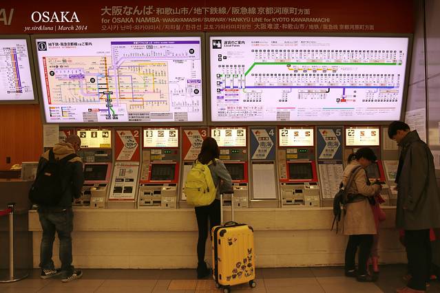 南海电铁就在购票窗口对面,目之所及地位置,坐到大阪难波。(第一次坐日本的电铁真的心慌慌呢,上车下车反复确认了好几趟生怕坐错,但多几次就习惯了,认得中文的优越感一定会油然而生的)