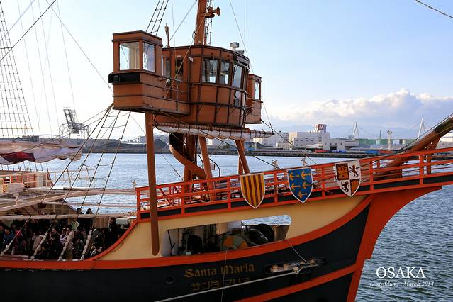 再走几步就是圣玛利亚号观光船(周游券免费),用50分钟时间听着完全不知所云的日文解说,在这港口海湾里兜上一圈。(一般般啦)