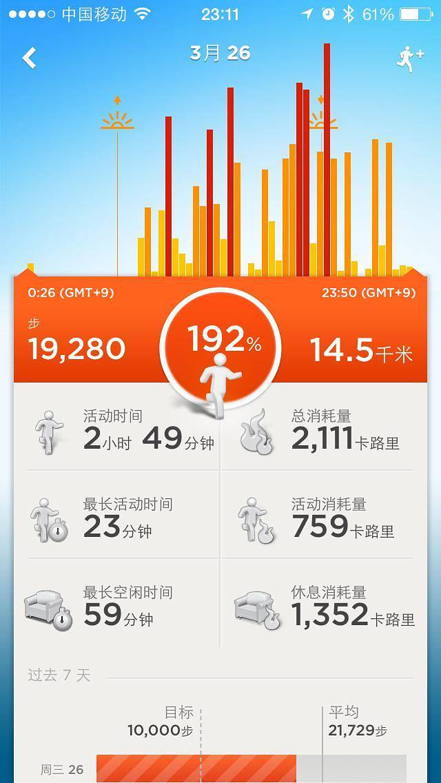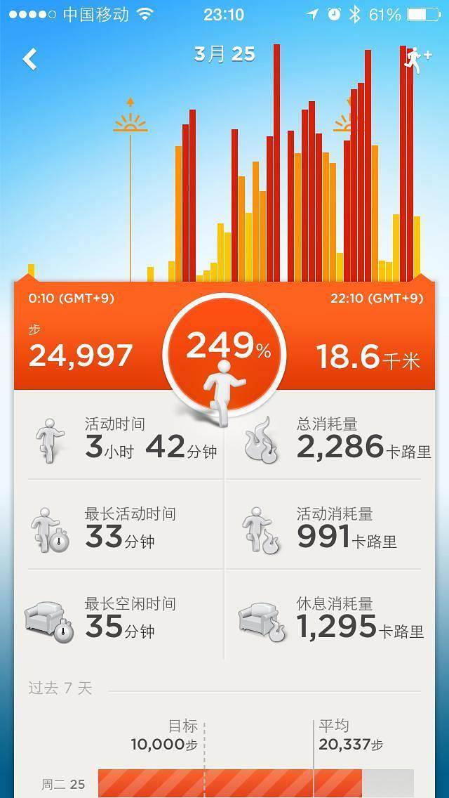 有坚持:据jawbone可靠统计,我俩十天来每人共计走了越235000步!(我略高于yesir,因为穿木屐那天小碎步秒杀他);转换成yesir不靠谱估计,可以从宁波走到杭州!还多20公里-_-# 够耐力!够坚持!