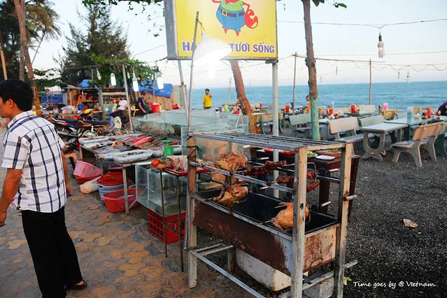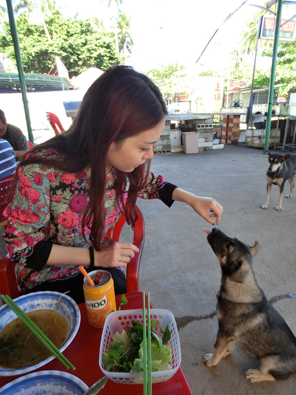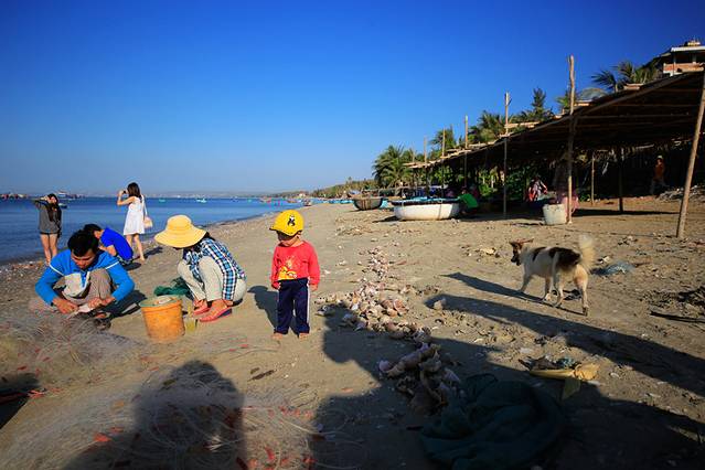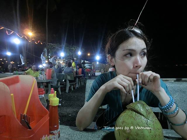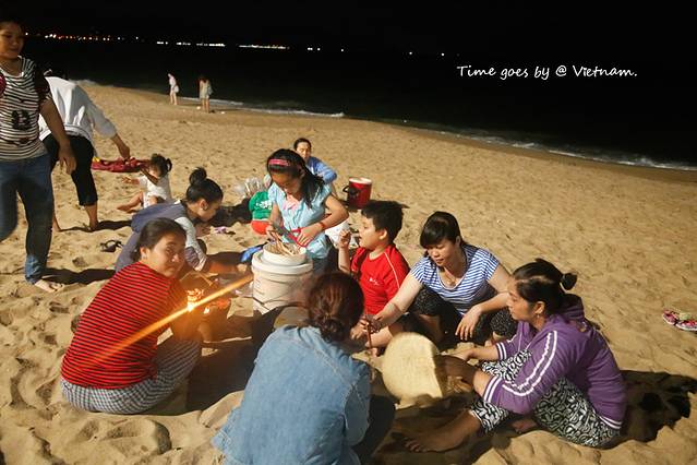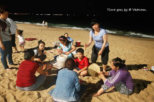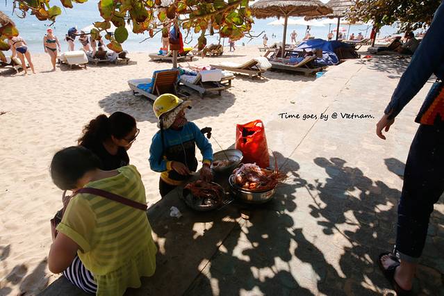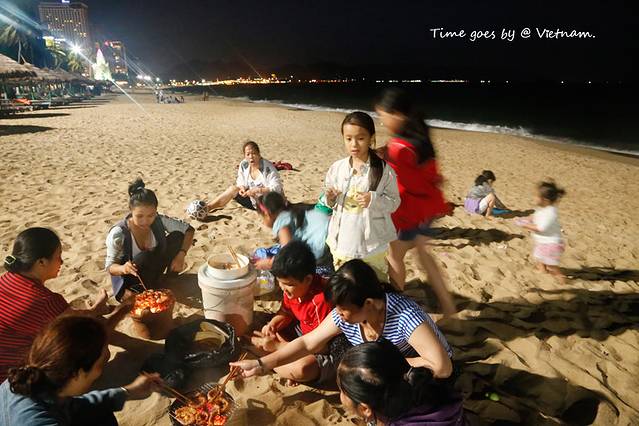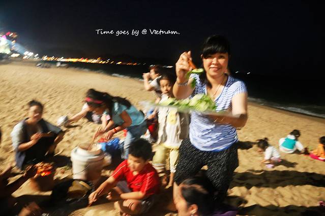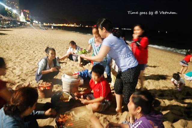 在芽庄,感谢在沙滩上聚餐的一家人招呼我过去一起品尝……