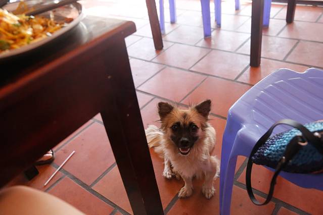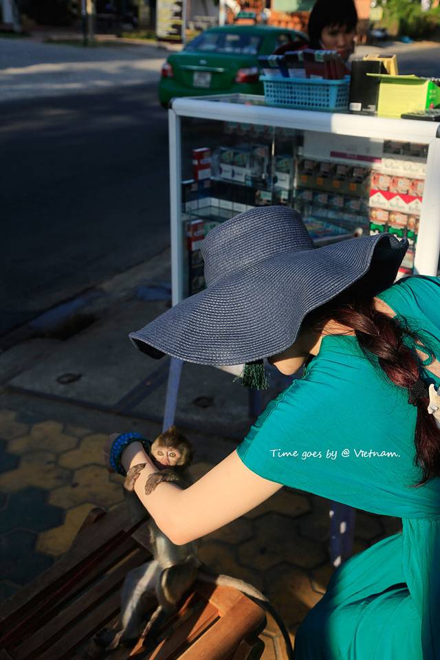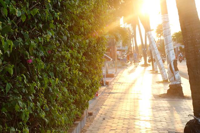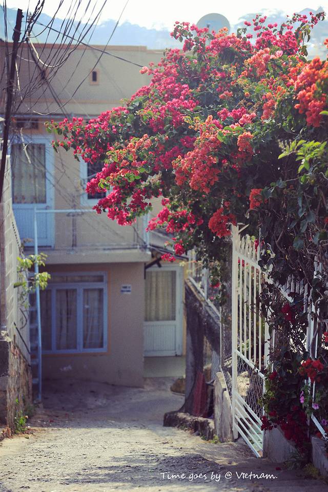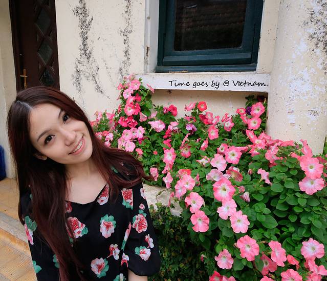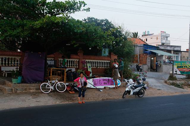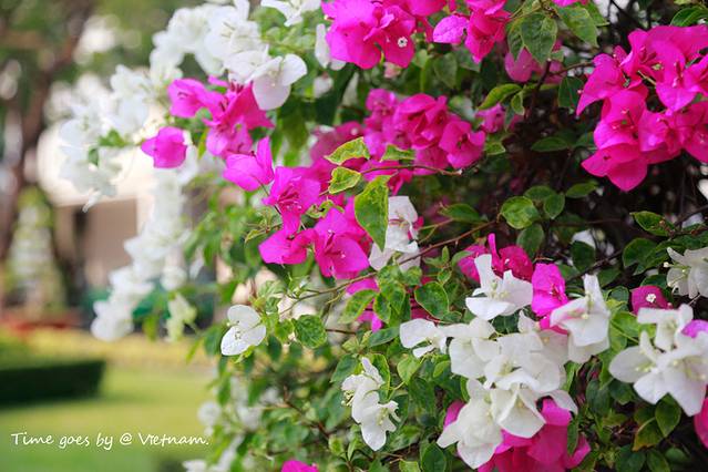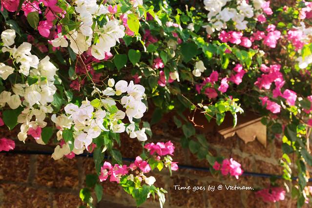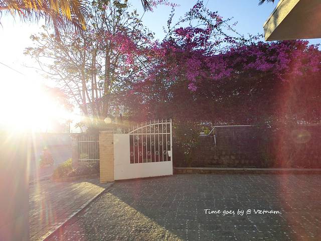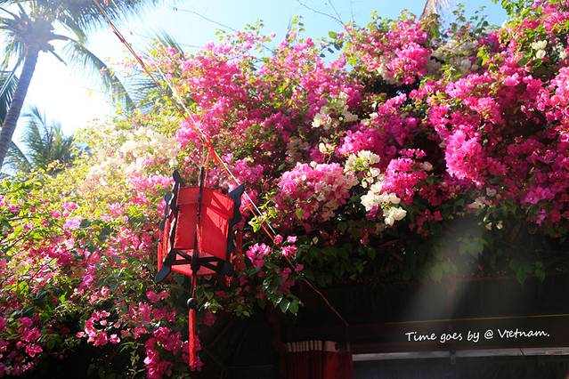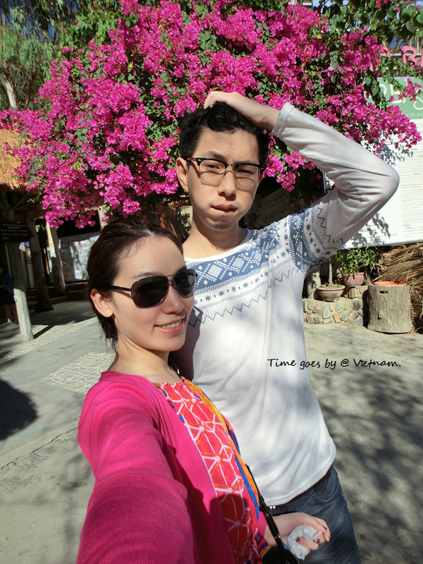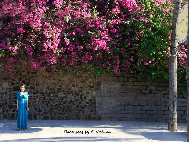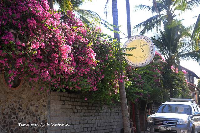 充满中+越式风情的Full Moon Beach光是门口如瀑布般的三角梅的布局就让我向往不已了,可是最便宜的房型都要70刀,讲价的话最多可以打9折。最后还是没有舍得,那就用“到此一游”的方式纪念吧。
