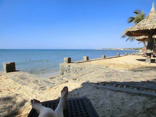 相信有看攻略的亲们都知道美奈的海是越向西边越美,但也越贵,动辄几百上千。综合对比后,我选择了这家。这家我并没有在网上订,因为在网上查价好贵啊,要三百多RMB,但是攻略说只要二十来刀,所以我是去到才找的。不过去到的时候二十来刀已经成为传说了,update现在的价格是:园景房30刀,海景房35刀。However,两百块左右(含早)RMB的价格,便能拥有独立泳池+私家海滩+比基尼飞钉妹子。偷得浮生半日闲,夫复何求呢?