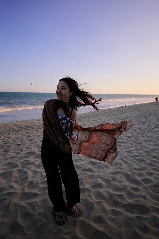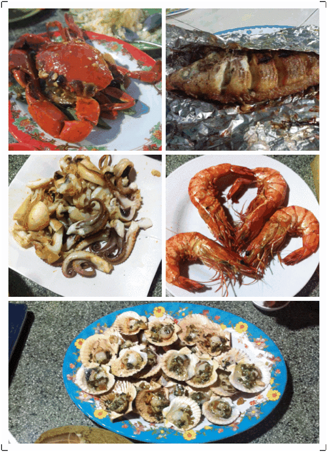 看到有人在烤食物,以为是卖的……凑过去问了才知道原来人家是一家人在海边聚餐。他们看到我正想离开,这位蓝色横条短袖的女士连忙叫住我,热情的邀请我留下来跟他们一起玩。