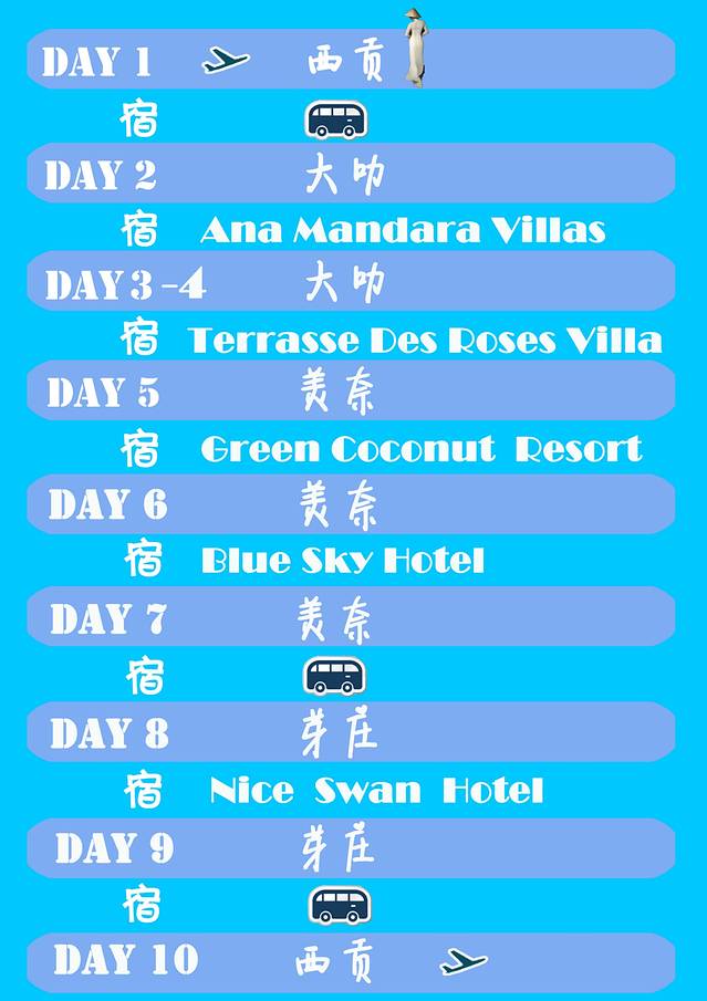 这次此次行程的schedule,其实当西贡是第一站的时候,线路应该是:SAIGON(西贡)——MUINE(美奈)——DALAT——NHA TRANG这样一条线上去才是最合理的。因为我在DALAT的酒店一早就订好了日期,买机票的时候更改了一开始初定的出发时间。但酒店前后日期的同等房型都full了,要么按原定日期入住,要么“取消订房”,无法变更日期。所以只好第二站先去大叻。