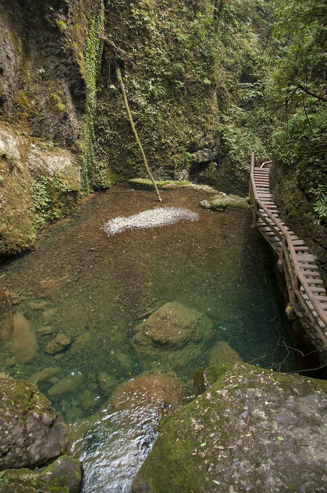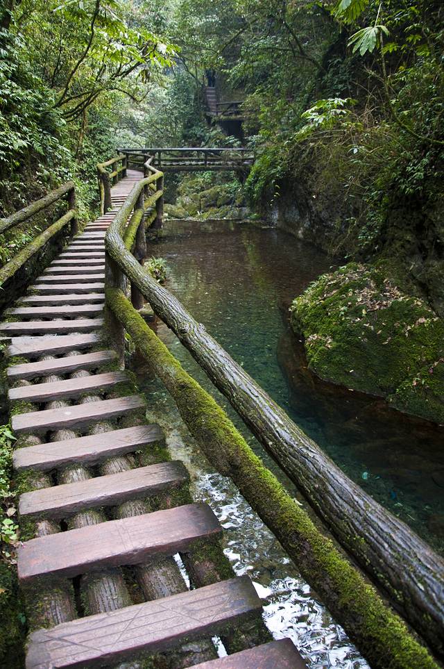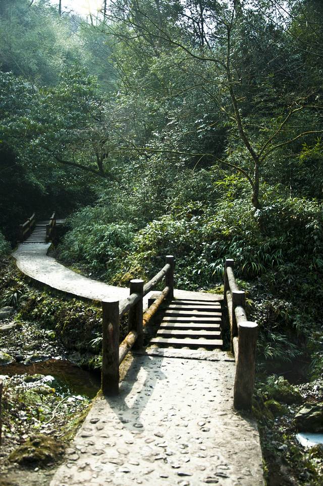 从成都北站(老成都站)坐动车去青城山,9:05开车,10:00到青城山站,15元,很方便。出了火车站有个广场,开往都江堰、青城山的班车都在这边,满员就发车。特别说明的是,青城山分前山和后山,通常广告介绍的“问道青城山”指的是前山,那里都是道场,是中国道教的祖庭之一,喜欢人文历史的朋友可以去前山,那边也不高,游玩的比较轻松。后山是零几年才开发的,主要是突出了青城山“幽”的自然风貌,有山间栈道、各种瀑布、怪石。优点是游客少,没有太多商业包装。我们这次去的是后山,从高铁站坐小巴车要15元,路上需要40分钟,一路都是山间公路,上上下下,加之旁边的小溪,非常有趣。我们是从后山脚下坐索道到顶,下山有两条路,建议往又一村方向下山,那里的风景最为优美。