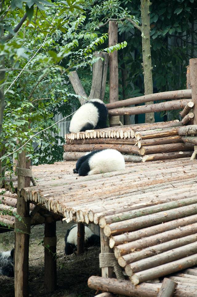 在宽窄巷子口的景区直通车买了大熊猫基地的门票,有往返免费班车和导游,这个季节正好看见了许多四五个月的小熊猫,游客也不多,萌翻了。