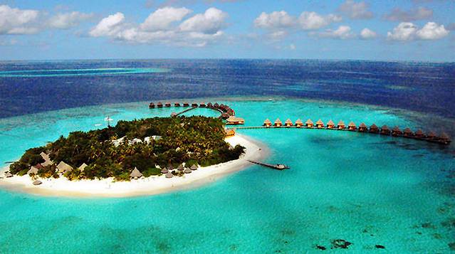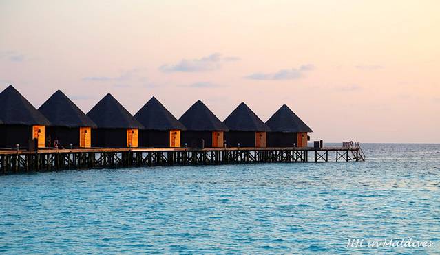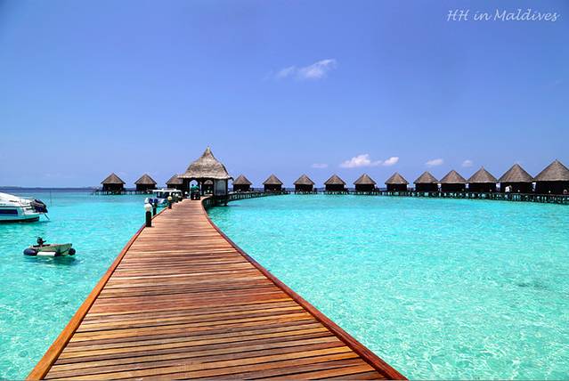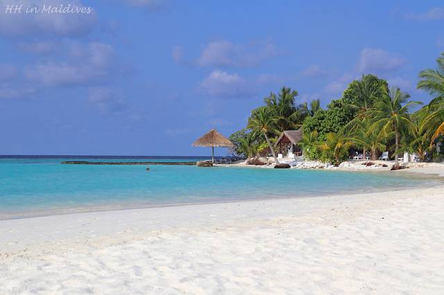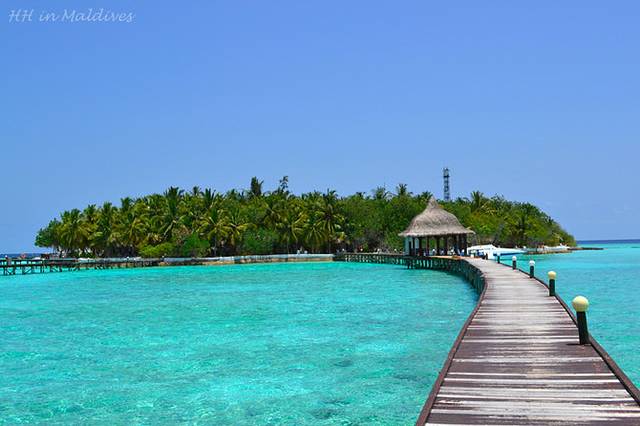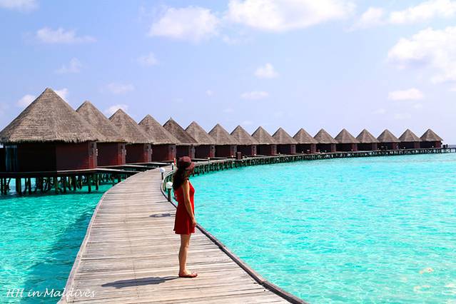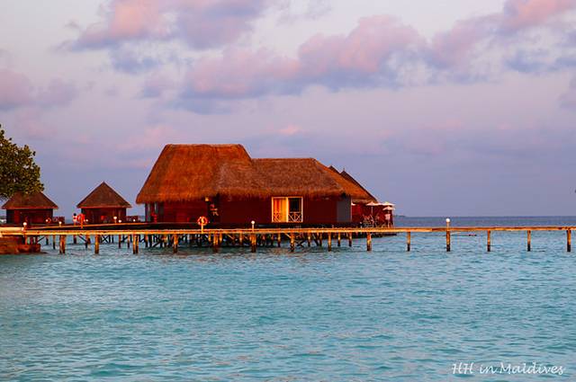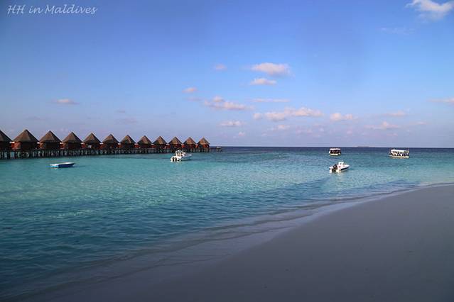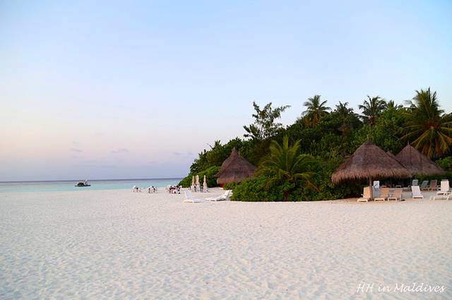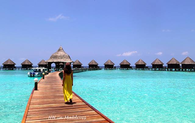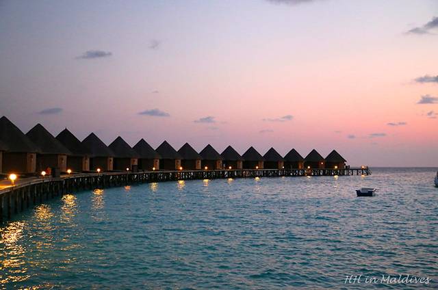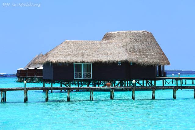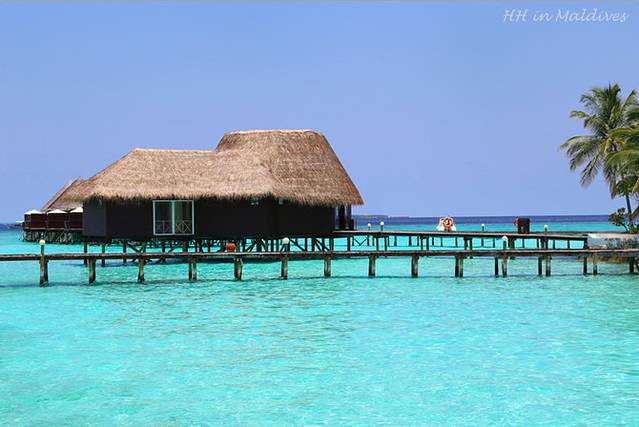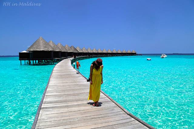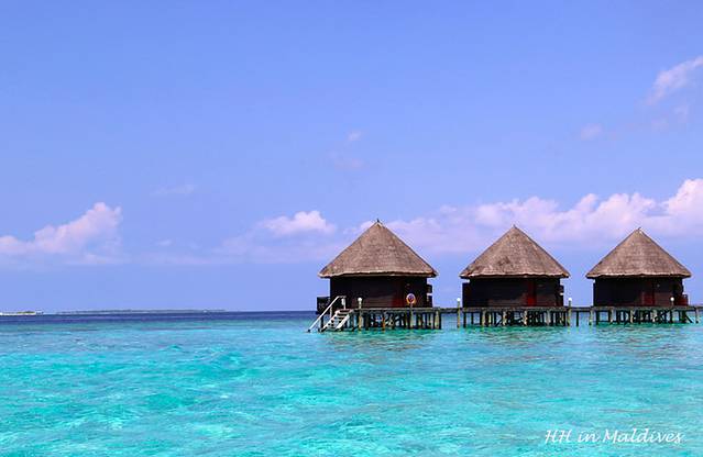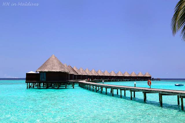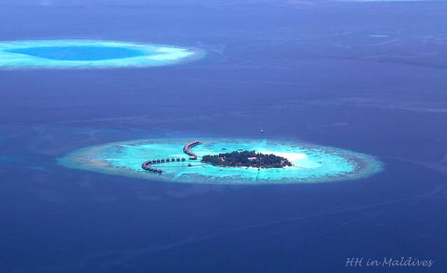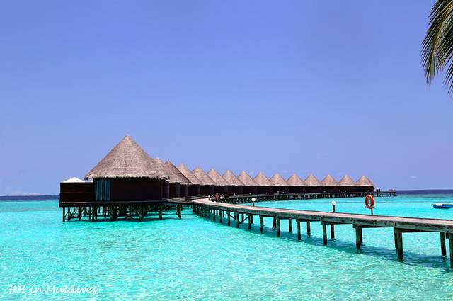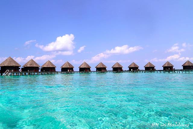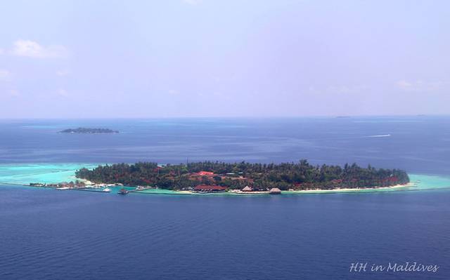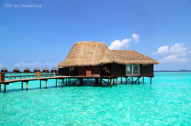 看了很多岛,然后初步选了两个,一个是Helengeli Island(海伦吉利岛),离马累较远,可以坐水飞,俯视小岛,很美,不过这个岛没有水屋。另一个是Thulhagiri Island(蓝色美人蕉),离马累近,没有水飞,快艇接送,不过有水屋。我纠结了一天,直到看到蓝色美人蕉的这张图片。