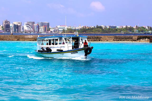 很帅的快艇。背景那个岛就是马累,马尔代夫的首都,世界上最小的首都。