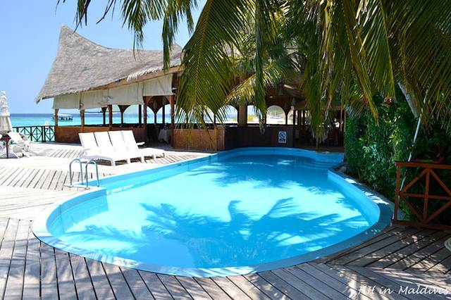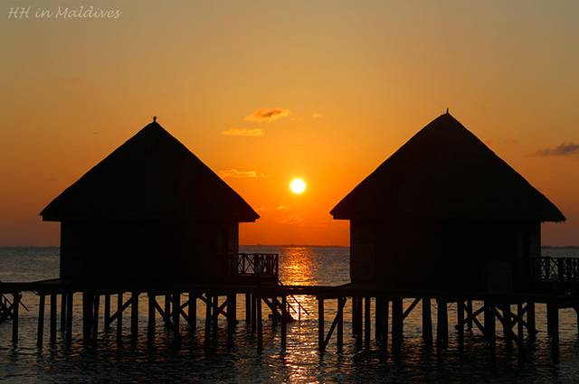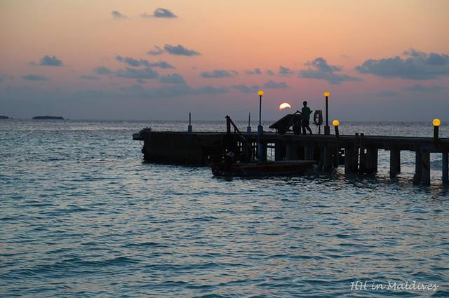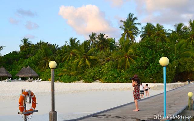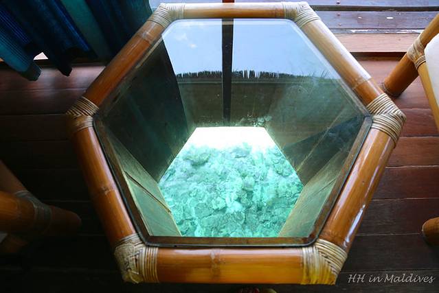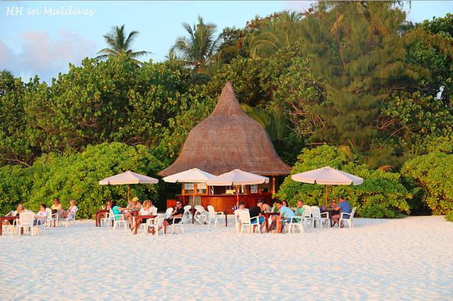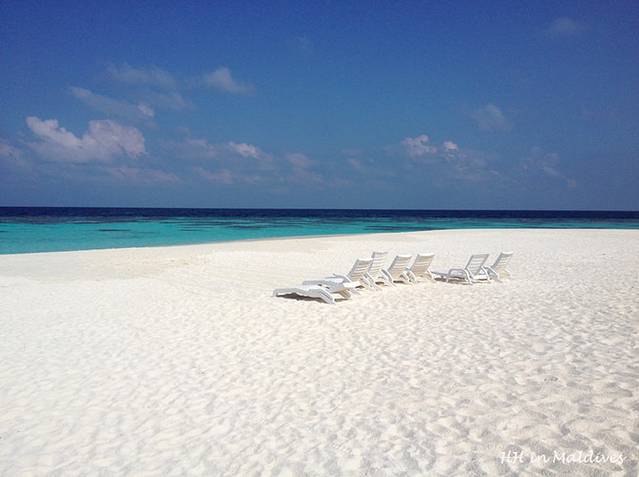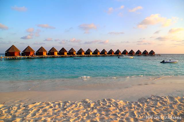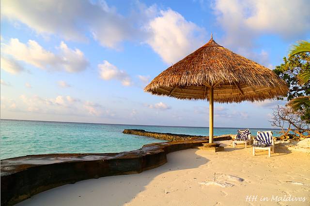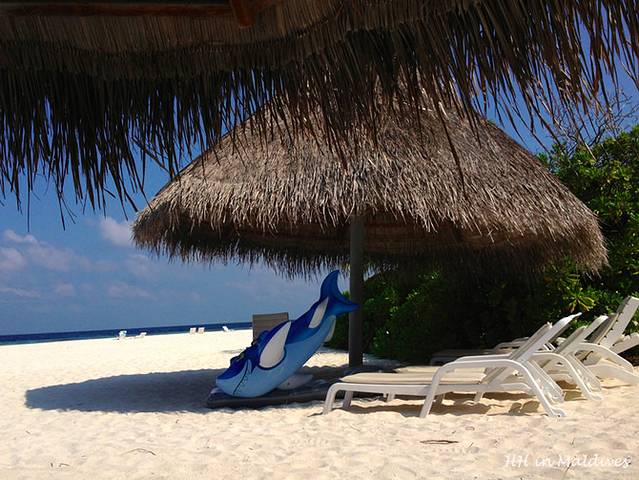 Thulhagiri离马累不远,25分钟的快艇就到,登岛,我们在茅草搭盖的大厅休息,等待安排房间。我走出去看,瞬间被惊艳。
