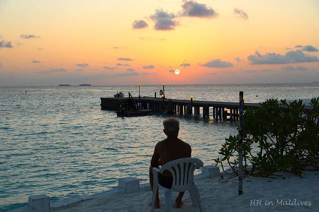 ——黄昏时,我们呆在海滩,看码头送货的快艇如期而至,太阳落下,黑暗慢慢降临,然后蹓跶去吃晚餐。几乎每个黄昏都是这样,如日出日落,潮汐更替。