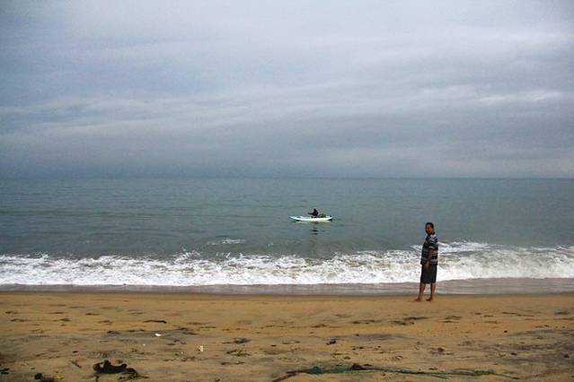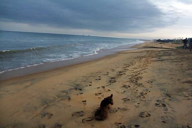 第二天,是时差的缘故嘛,早上四点就醒了,青旅的老板也没醒,五点多的时候带着单反出发去了海边(尼甘布很多酒店都是沿着海滩一路建过去的,所以离海超近)。碰到了一直斯里兰卡狗狗,very nice的带着我到海边,超级有灵性,一路陪着我,我停下来拍照尽然停下来等我,还叫了两只他的小伙伴和我一起玩耍。海滩边一群渔夫聚在一起织网捕鱼,看到我后微笑的和我打招呼,暖暖的,在斯里兰卡的第一个早晨,非常美丽的早晨。